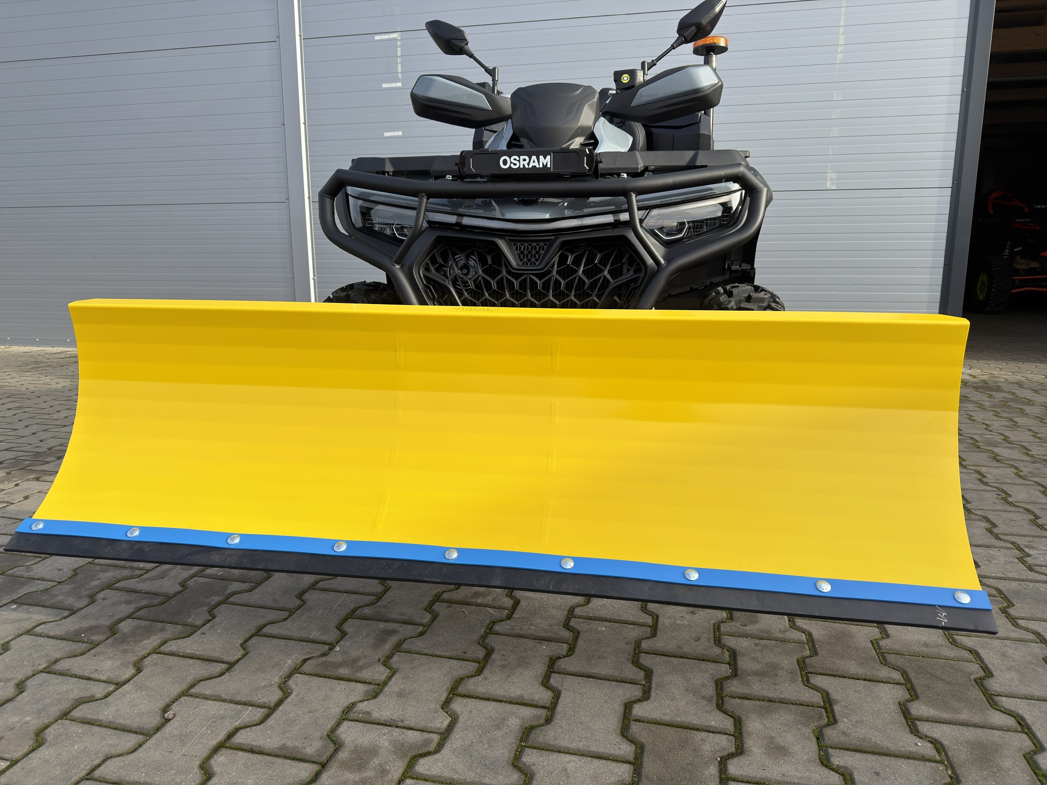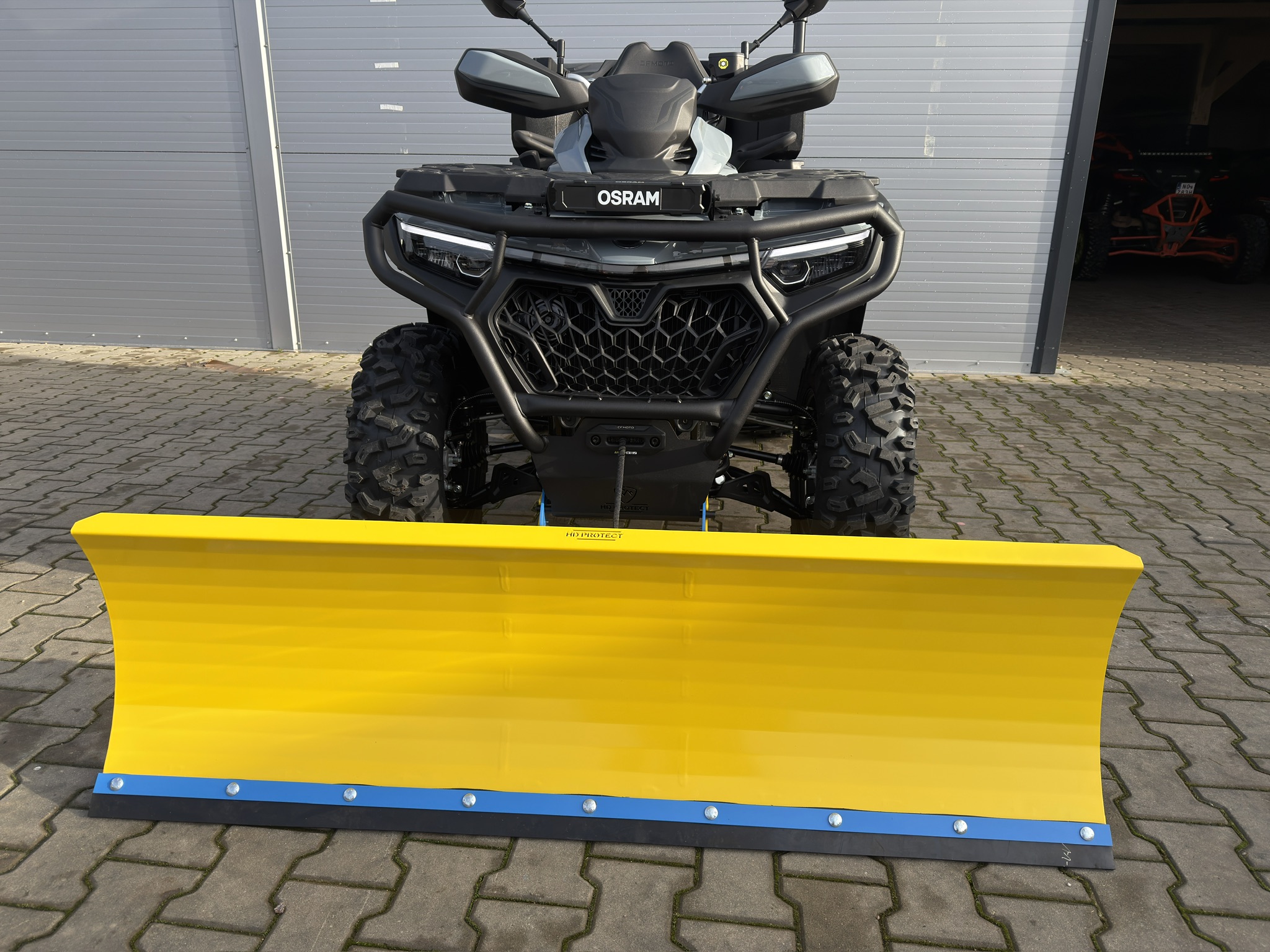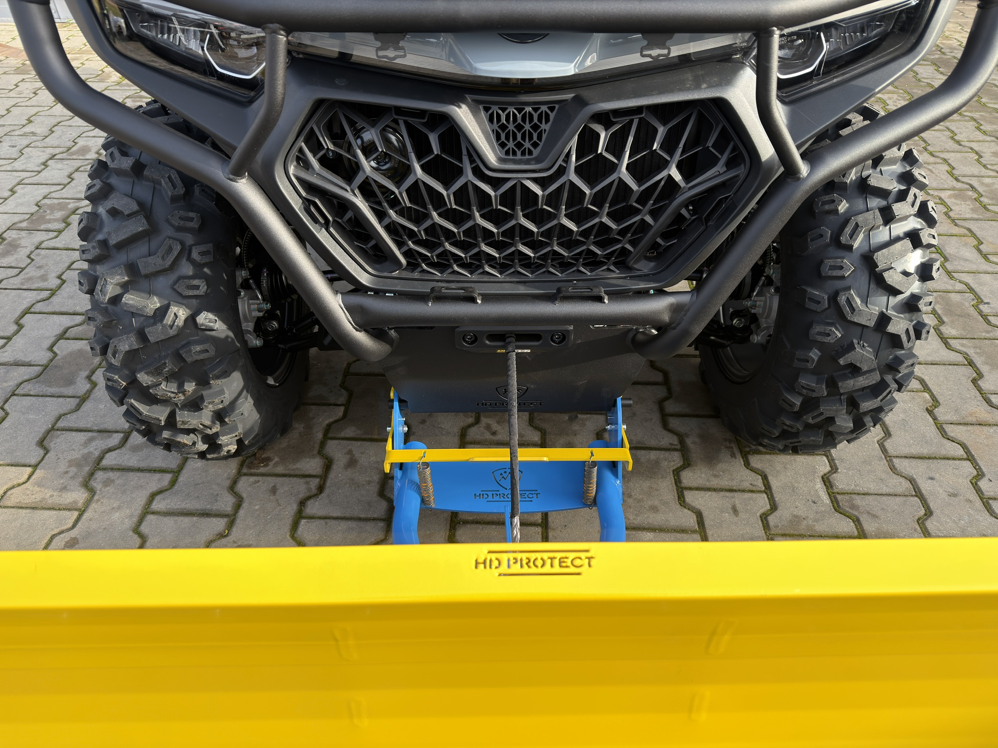 Pług HDProtect – szybki montaż. Solidna konstrukcja stalowa, łatwy system szybkiego montażu, regulacja kąta i głębokości pracy. Idealny do cięższych prac odśnieżania i niwelacji terenu.